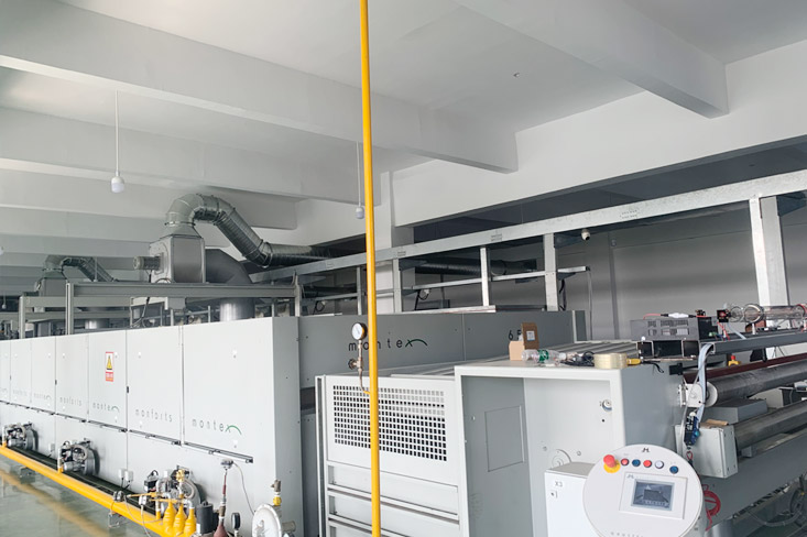 引進德國進口後整理設備“門富士”熱定型機2台,瑞士進口片梭織機160多台及配套整經機等設備。
